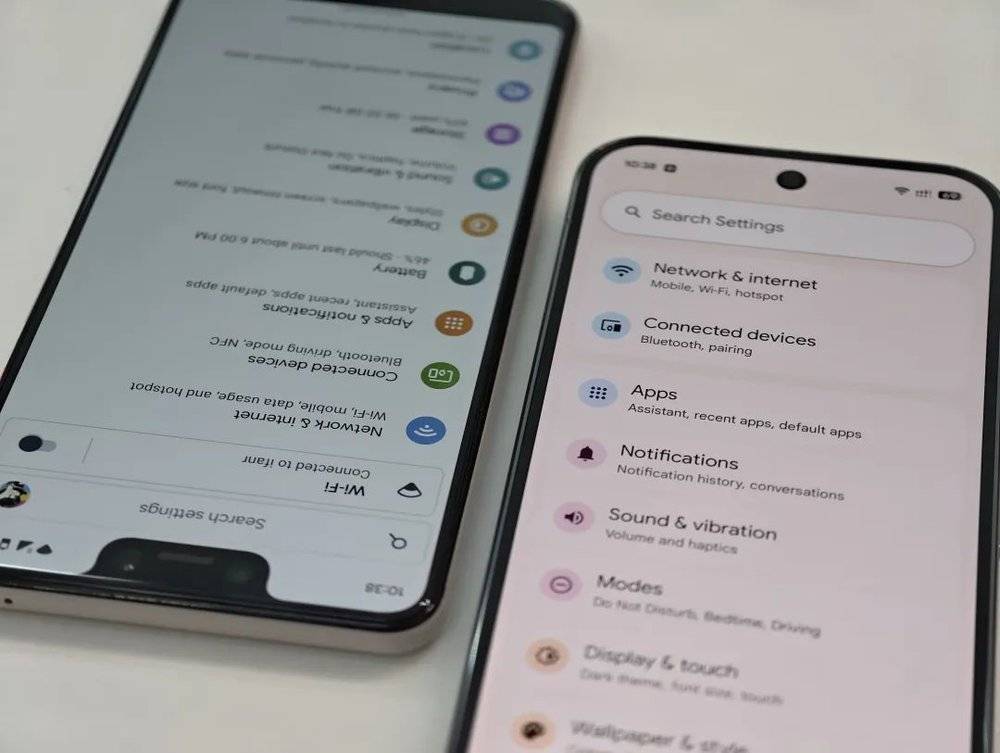 除了以上比较直观的更新之外,Android 16还在一部分系统界面上做出了微调。比如在设置app中,原本一直跟随系统主题色的菜单图标重新变得多彩起来,根据不同的大类进行了分色,仿佛是对Android 11的一种呼应:
