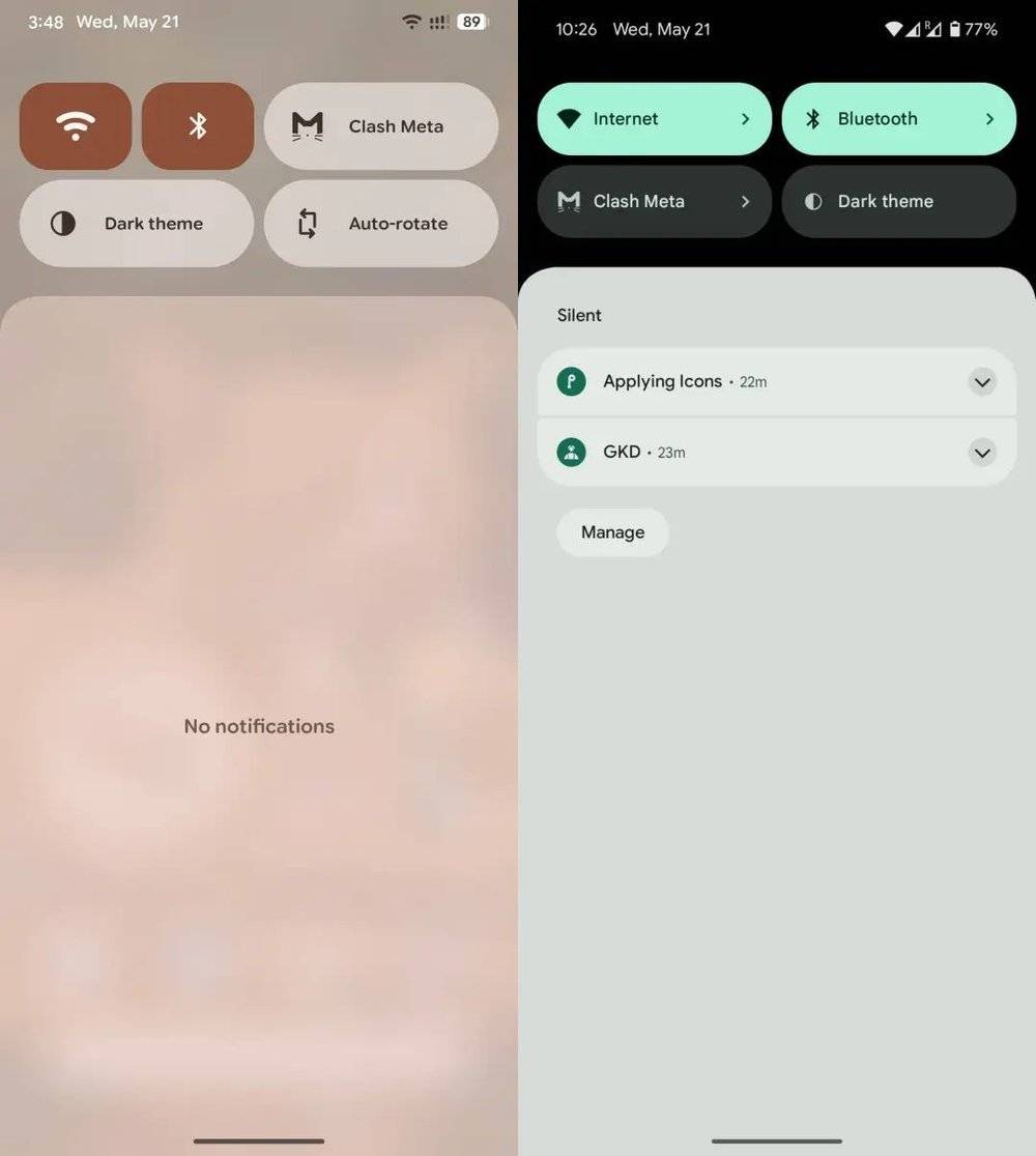 左为Android 11,右为Android 16