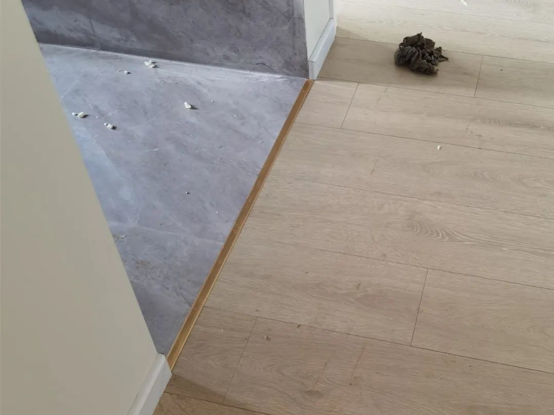 现在很多人家装修都是房间私密区域铺木地板,客厅餐厅等公共区域贴地砖,如此一来在大厅与房间之间的地面就是不同材质了,中间的缝隙不能填缝与美缝,因此最好的方法就是在地砖与木地板之间装金属收边条,把缝隙盖住做收口。
