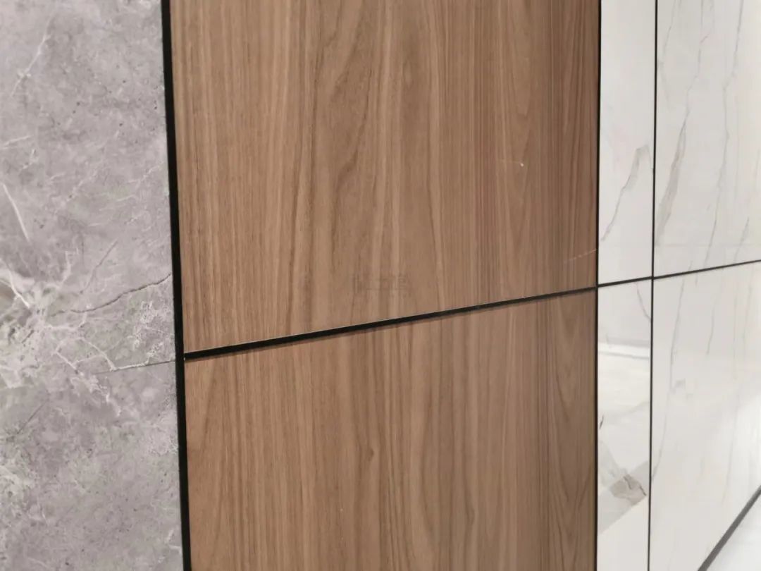 ▲木饰面板材拼接收口。