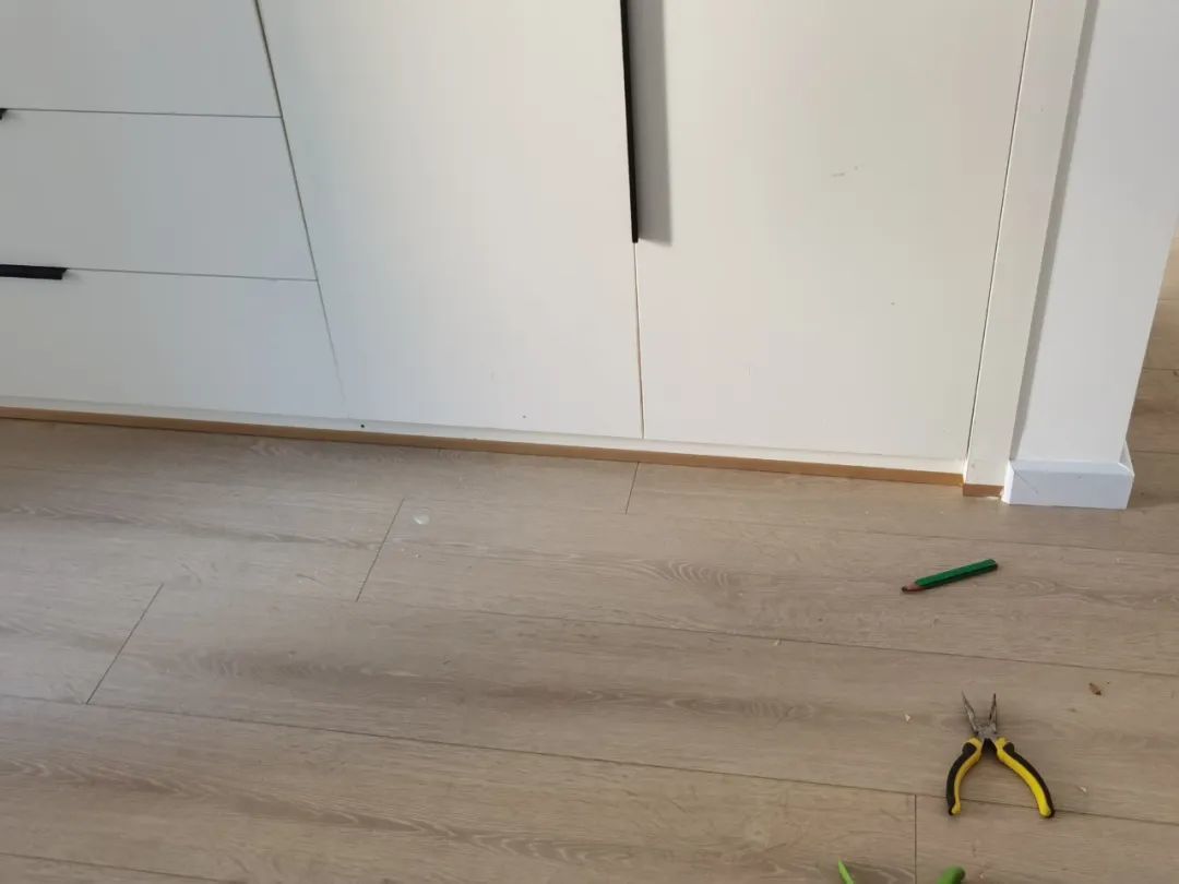 ▲木地板与衣柜之间缝隙收口。