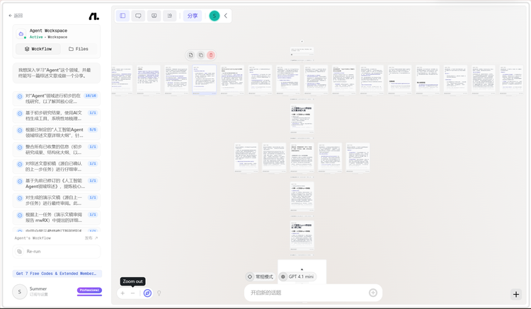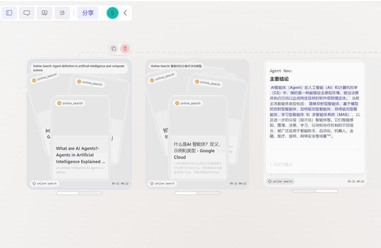 这是一个非常适合 Neo 的任务,思维树本身就适合做知识整理。左侧的工作流将任务分解为多个步骤,右侧则是节点状的结果拆解。