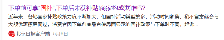“下单前可享国补,下单后未获补贴”