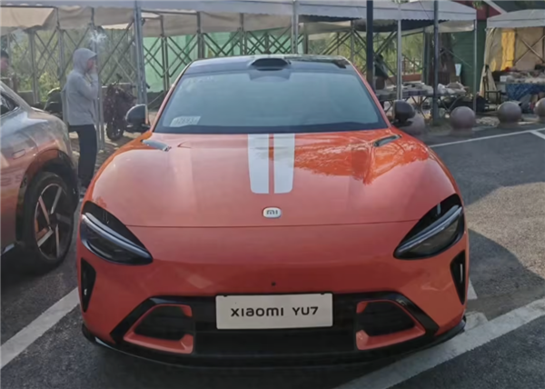 5月25日消息,小米 YU7的熔岩橙车色实车图近日首次在网上曝光,此前该车在发布会上已公布宝石绿、钛金属色和熔岩橙三种车色。