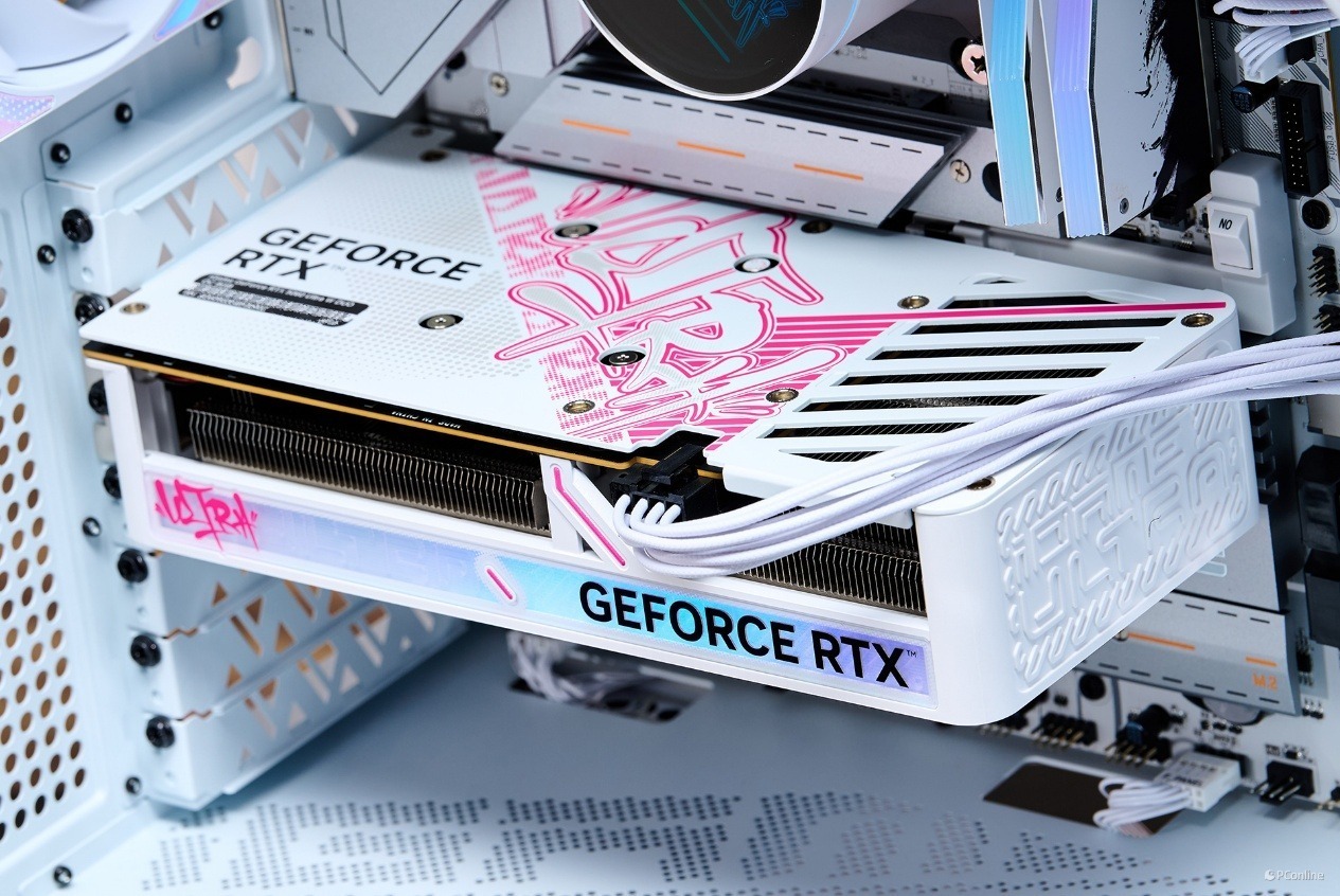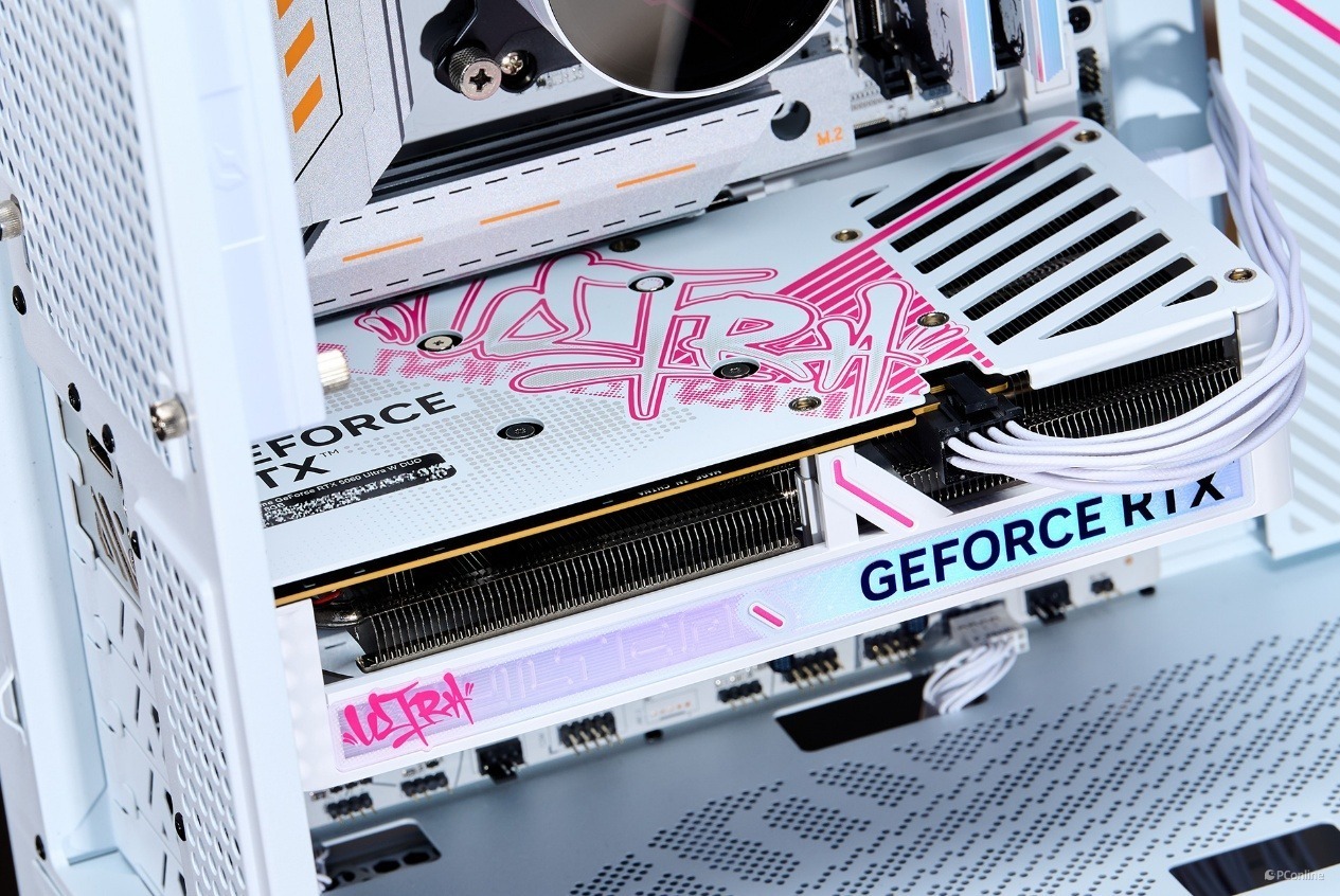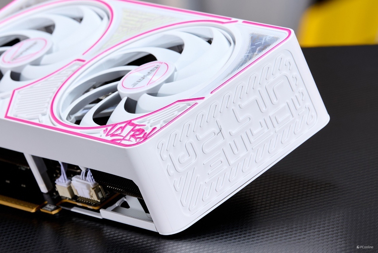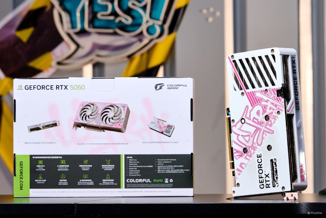 除了卓越的性能表现,iGame GeForce RTX 5060 Ultra W DUO OC 8GB的独特设计同样引人注目。趣味的嘻哈艺术风格,极富冲击力的涂鸦字体,白粉配色再加上渐变设计,颜值上非常能打。特别是配合七彩虹iGame Ultra家族全家桶一起装机时,视觉效果更佳,无论是装机展示还是游戏沉浸,都能瞬间点燃空间氛围,重新定义电竞美学的潮玩边界。颜值党选它就对了!