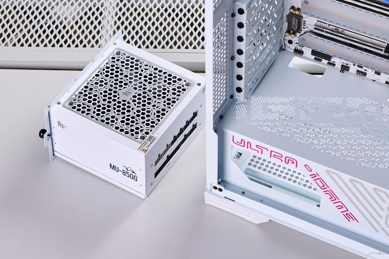 至于电源方面,我们选择搭配的是昆仑MU-850G 冰山版,这是鑫谷昆仑系列在市场上广受好评的一款电源产品。它拥有850W的额定功率,并基于LLC Pro+DC-DC纯血架构设计,配备了英飞凌PFC MOS和全日本制造的电容,扎实的硬件堆料确保了高转换效率和稳定的输出。此外,它遵循ATX3.1的高标准制造,具备原生16Pin 12V HPWR接口,完美兼容PCIe 5.0显卡,特别是与NVIDIA最新推出的GEFORCE RTX 50系列显卡。