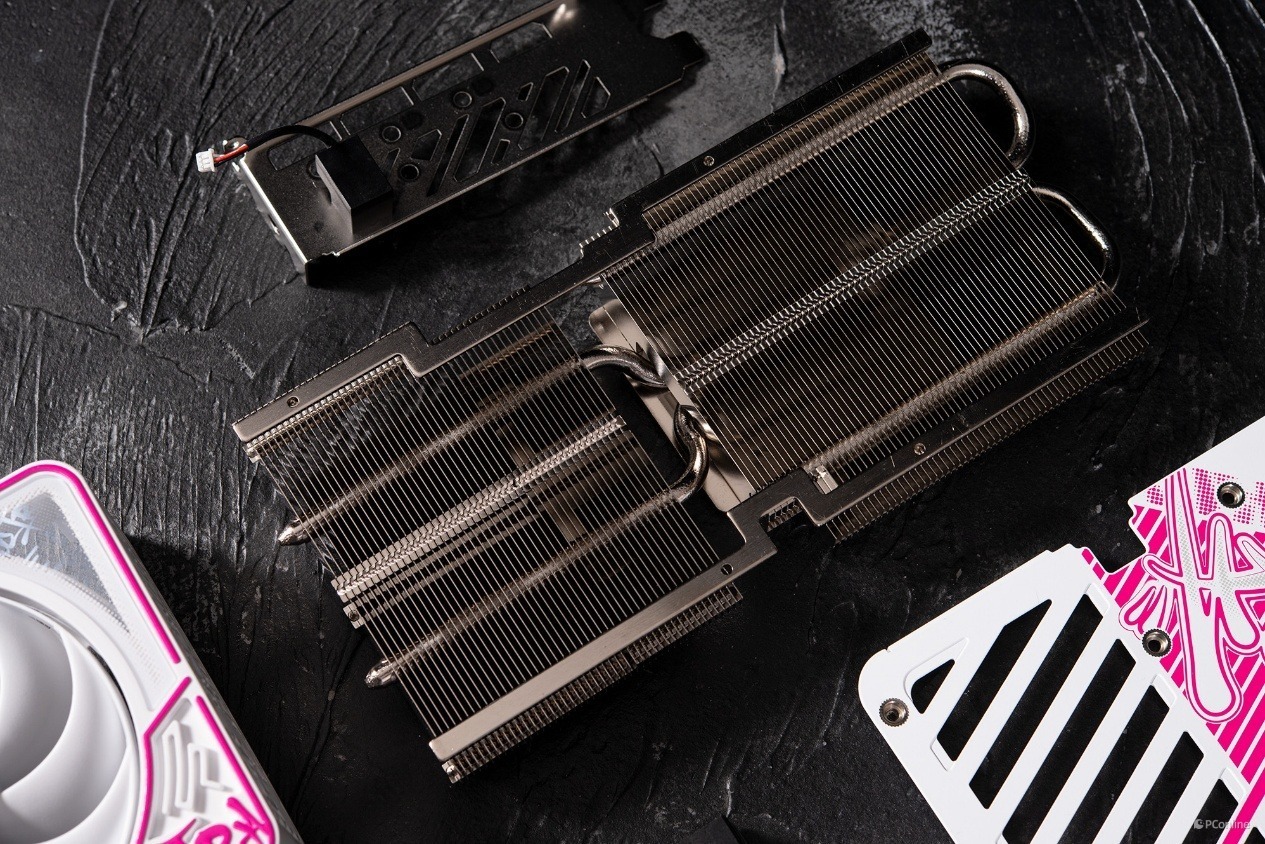 纯铜底、散热鳍片,以及热管均采用镀镍处理,有效防止氧化。并且七彩虹还为包括显存与供电MOSFET上都配备了导热垫进行辅助散热,可以保证显卡在高频下更为稳定地运行。