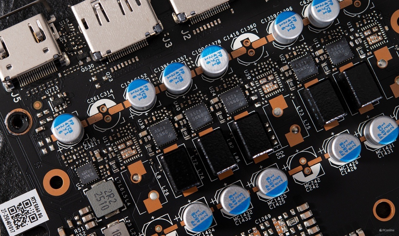 PCB尾部则是两相显存供电,采用了上下桥MOSFET的设计。