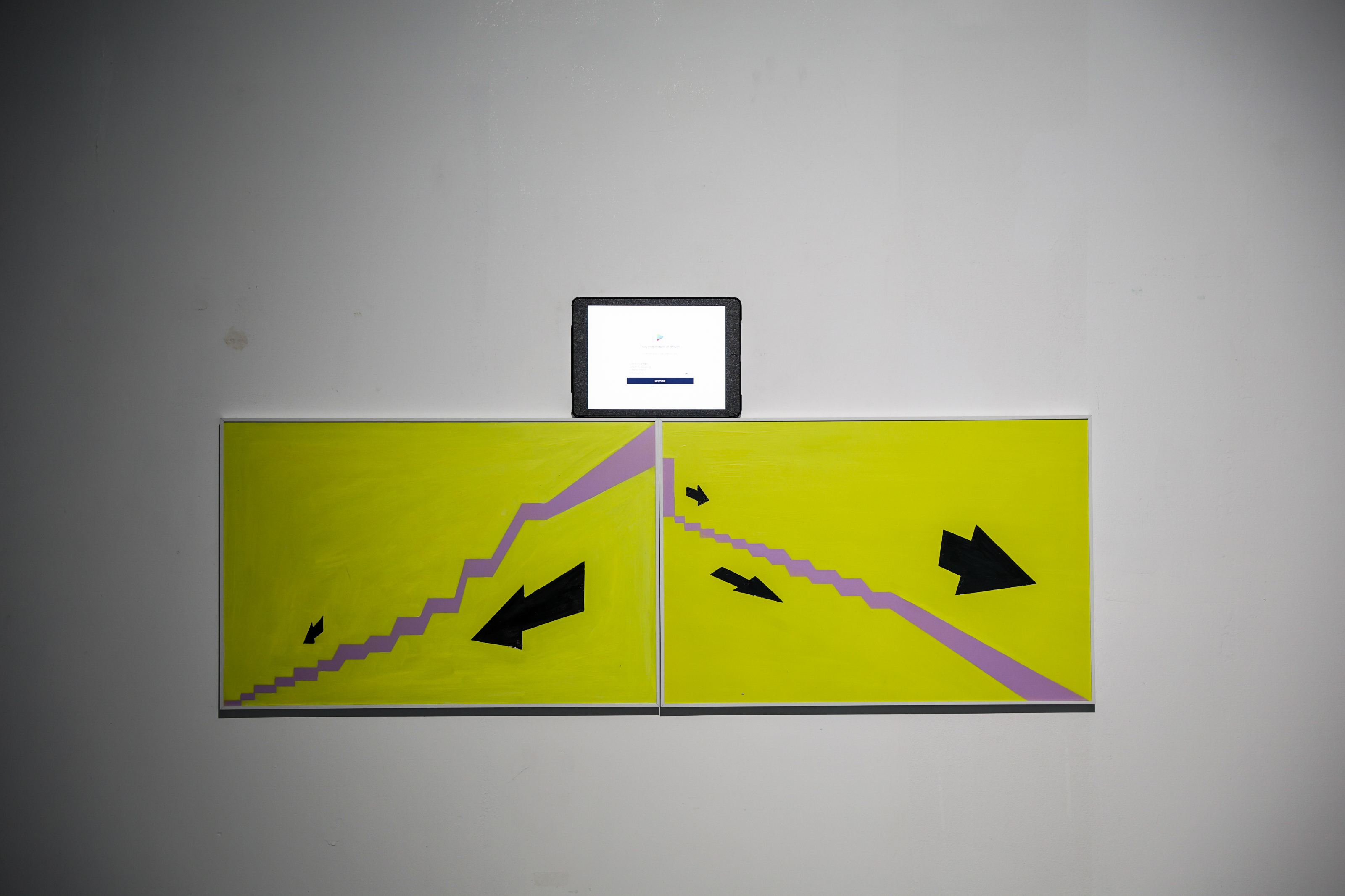 艺术家龚新如的《迷途系列--导向1014》,以城市交通元素为创作出发点,箭头的导向意味,暗喻当代人的迷失之旅,契合SOMEONE LIKE YOU 的主题。