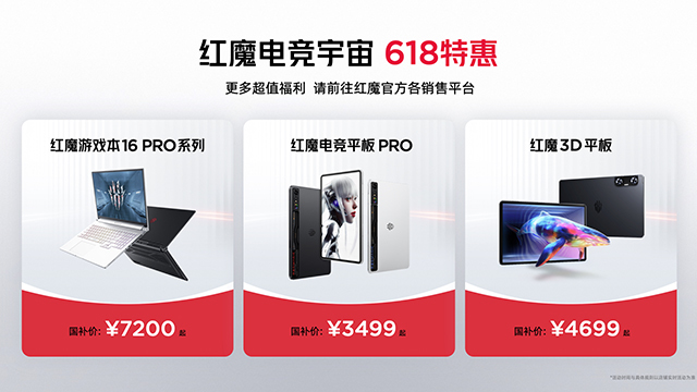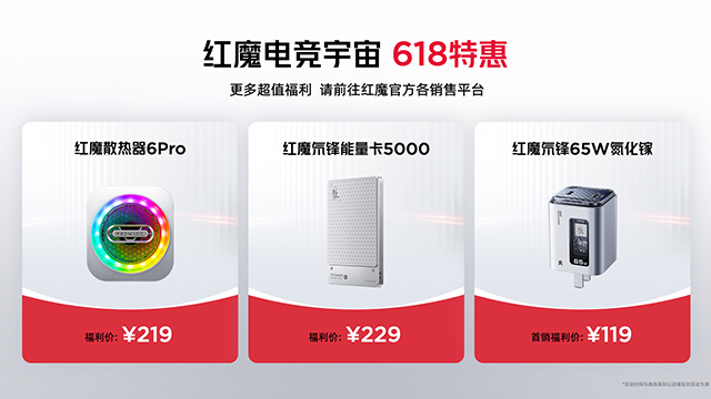 正值618,红魔游戏本、电竞平板,通通限时直降,更有散热器、氘锋能量卡、氘锋Mini等生态周边产品,以超低福利价登场,助力游戏玩家电竞装备升级。
