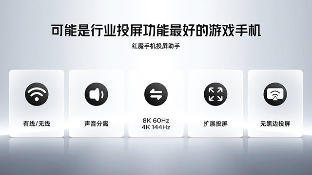 红魔拥有最低的延迟、最高的画质、最全的功能的投屏体验,早已成为众多电竞选手和游戏主播的首选装备。现在红魔10S Pro系列在直播投屏领域再度升级,USB3.2 Gen2接口支持8K 60Hz等多规格无损输出,画面同步流畅。WLAN+移动数据低延时技术+双路WLAN+5G三路并发技术消除直播“460”卡顿,无线投屏的延时做到了行业最低,再次重新定义“手机投屏天花板”。