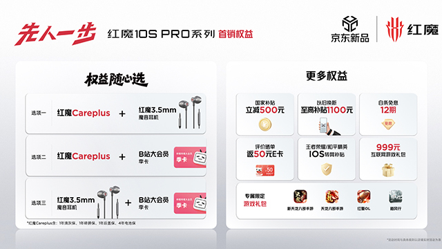 5月26日,红魔10S Pro系列在京东开启全球首发!现推出全球独家“先人一步新品尝鲜购”活动,上京东搜索红魔10S Pro,即可抢先体验新机。不仅如此,红魔10S Pro系列还带来了多重惊喜权益:首销用户下单即享权益随心三选一、至高享白条12期分期,以旧换新至高补贴1100元。此外,购买红魔10S Pro系列,还能解锁游戏世界福利,《新天龙八部手游》、《天龙八部手游》、《踏风行》、《红警OL》等热门游戏的精美道具免费送,助你畅玩无阻!