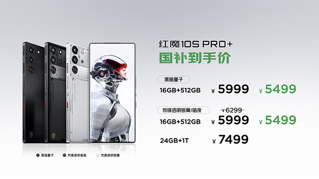 此次红魔10S Pro系列首发推出多个版本和配色,提供用户搭配选择,国补后价格更惊喜: