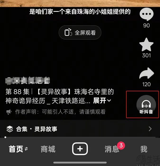 但需要注意的是,据我们三易生活的实测发现,目前仅有中长视频支持“听抖音”功能,时长在1分钟以内的短视频内容则暂不支持。