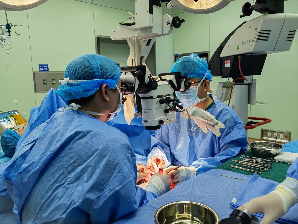 手术台上,医生通过显微镜为李女士进行了断指再植。“我们需要把患者指尖损伤的血管切除,不然很容易形成血栓,因为该患者的血管是被挤抽出来的,找到血管之后,还要判断它能不能用,确定能用才能进行缝合。”面对如此复杂的情况,经验丰富的骨一科团队临危不乱,有条不紊地进行清创、探查、固定、吻合等一系列操作,每一步都如在显微镜下“绣花”。