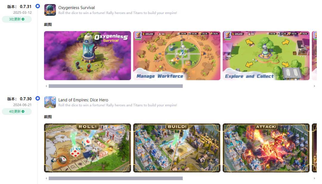 SLG或许字节游戏一直放不下的类型之一,《Land of Empires》尽管表现一般也仍运营至今,近期其测试包体更名迭代为《Oxygenless Survival》。目前Bluesea工作室在北京和上海都在为SLG项目开展招聘,据公开信息猜测有是一款轻度融合类SLG,也可能对应的就是《Oxygenless Survival》。另外广州有为一款多文明题材的SLG招募美术岗位。