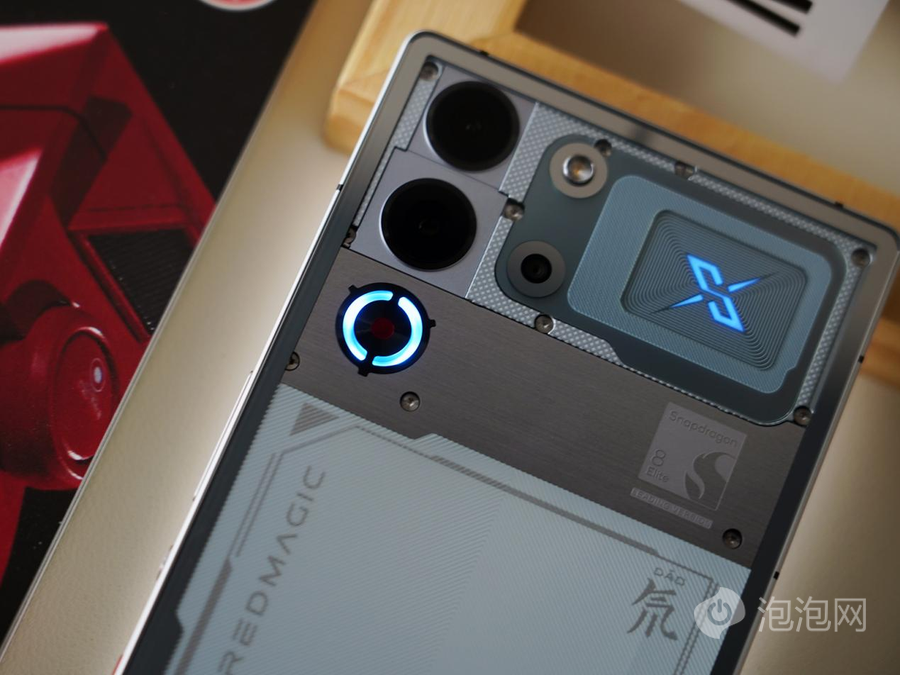 此外在红魔10S Pro背部还可以看到骁龙8至尊版的LOGO,也展示了手机在硬件上的实力。在红魔10S Pro背部还可以看到“氘”与红魔LOGO,同样也是氛围灯,再加上背部的机械纹理以及金属螺丝,呈现了更强烈的科幻感。