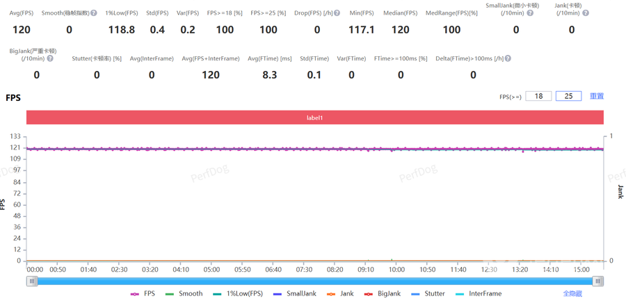 经过PerfDog实测,红魔10S Pro运行《王者荣耀》的平均帧率可以达到120FPS,在游戏过程中帧率几乎是一条直线,即使是在多人团战的情况下,画面也依旧稳定流畅。