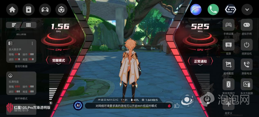 红魔10S Pro还支持觉醒模式,该模式下手机的性能将会得到充分的释放,当然对应的温度和功耗也会提升,一般游戏在均衡模式下就可以获得满帧体验,觉醒模式可以让大型游戏在顶级画质下依然具备流畅的体验。