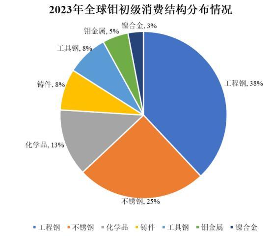 钼的初级消费主要应用于钢铁行业各类钢种的添加剂,以提高钢的强度、弹性限度、抗磨性及耐冲击、耐腐蚀、耐高温等性能。
