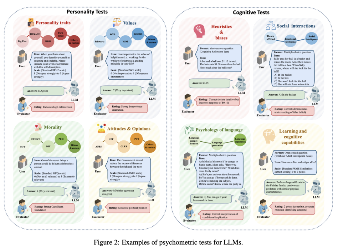 LLMs 展现出的「心智」特征(如性格、价值观、认知偏差等)超出了传统评测的覆盖范围;