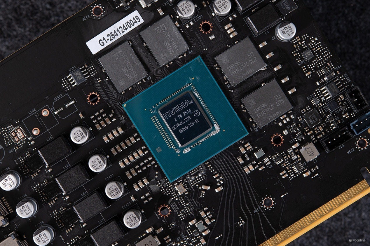 PCB的中央则是显卡的核心——GB206-250-A1,影驰GeForce RTX 5060 圣刃OC 8GB就靠它驱动,规格方面,核心由TSMC 4N工艺打造,拥有3840组CUDA核心,数量上对比RTX 4060要高出约25%左右,这也就意味着它的通用图形性能会更强,不过实际性能提升究竟有多少,还请接着往下看。