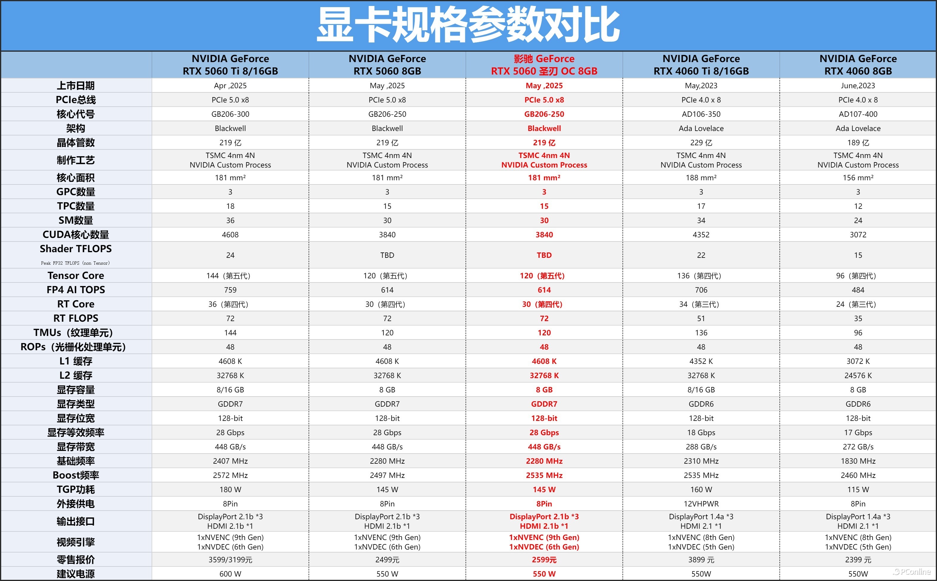 GeForce RTX 5060 8GB规格