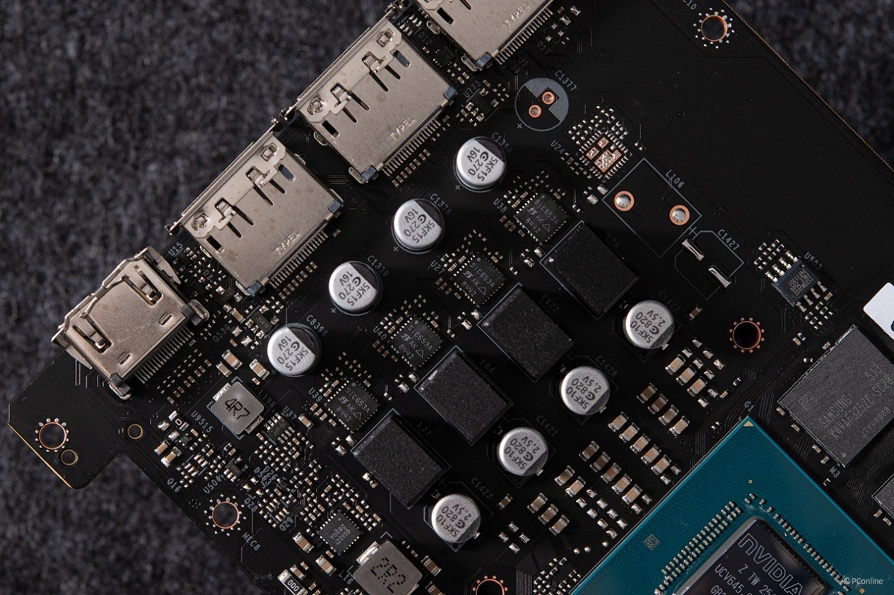 PCB的右侧则是2相显存供电,同样配备了独立的DrMos芯片。