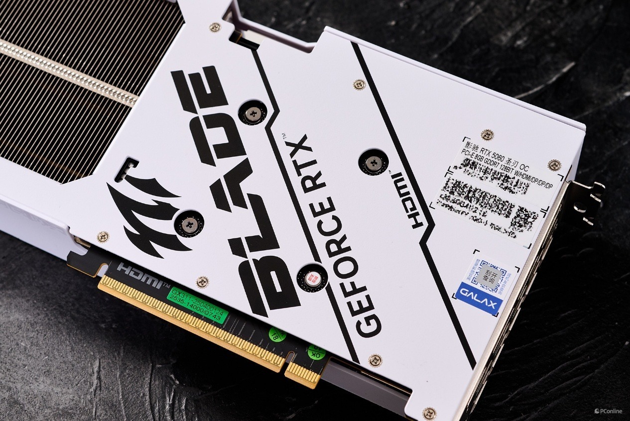 外观方面这款显卡也很有自己的特色,影驰GeForce RTX 5060 圣刃 OC 8GB采用了全新的金属装甲设计,白色无光设计简约圣洁,颜值非常高,非常适合海景房或纯白主题装机。同时,这款显卡的供电配置与散热堆料也不错,能够给玩家带来更高的效能、更好的散热效果和更安静的噪音表现。