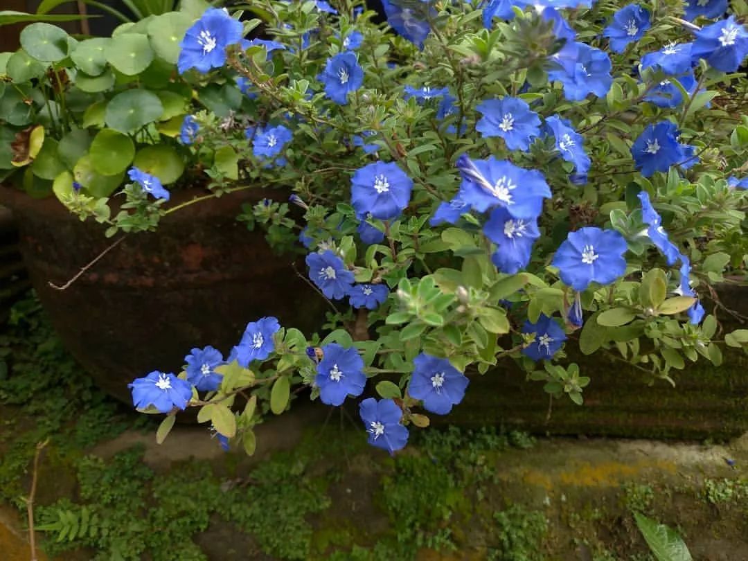 蓝星花适合养成垂盆植物或盆栽观赏花卉,皮实耐养,就是不耐阴,对光照需求特别大,家里缺乏阳光就不适合入手。每天起码要有4小时以上的直射光,缺乏光照花量会大大减少。