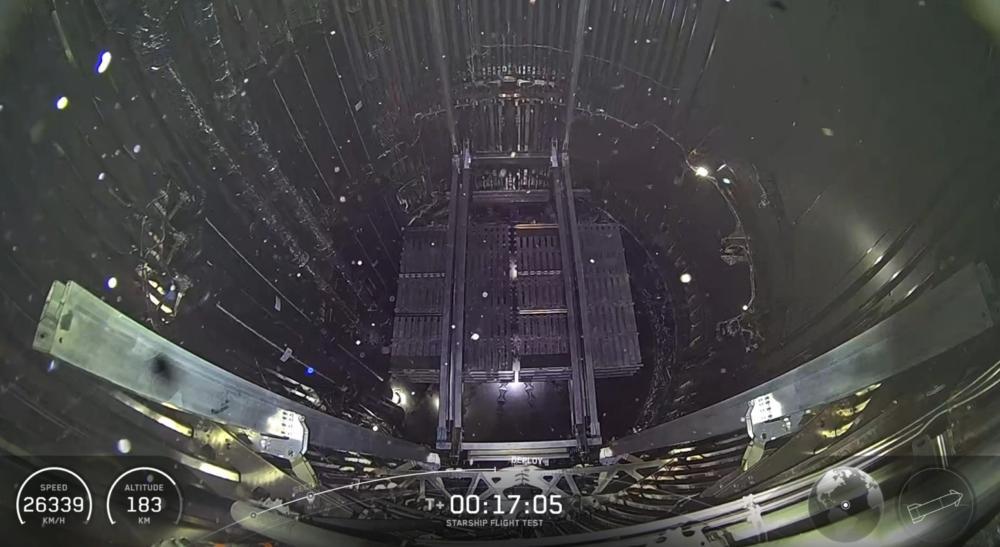 1)飞船首次有效载荷部署,包括8颗星链卫星的模拟器(和飞船一样亚轨道飞行,再入时烧毁)