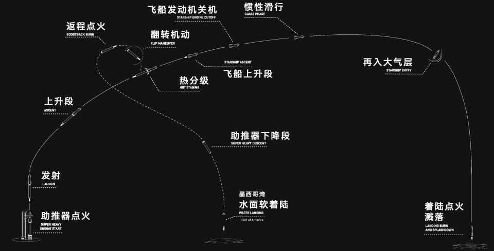下面进行的历次测试飞行进入了全新的阶段,就是所谓的“综合测试飞行”(IFT),也就是星舰和超重助推火箭的合体飞行: