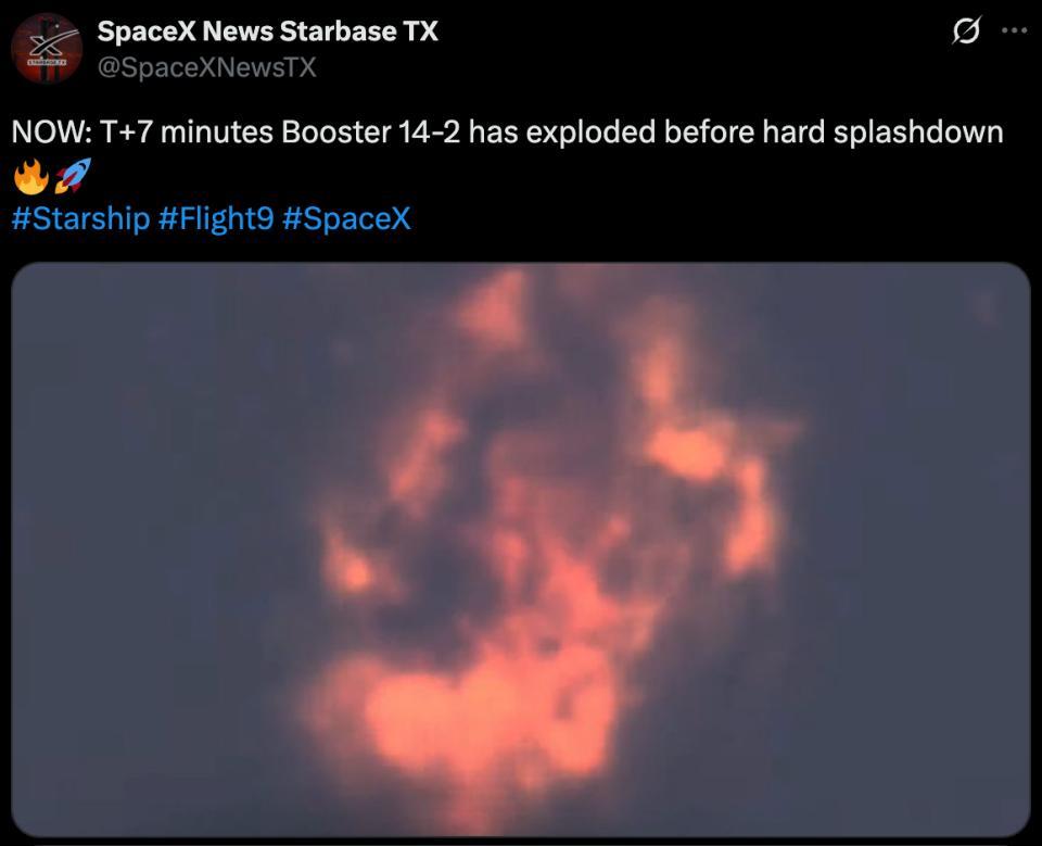 用户反馈B14.2在回收过程中爆炸 来源@SpaceX News Starbase TX