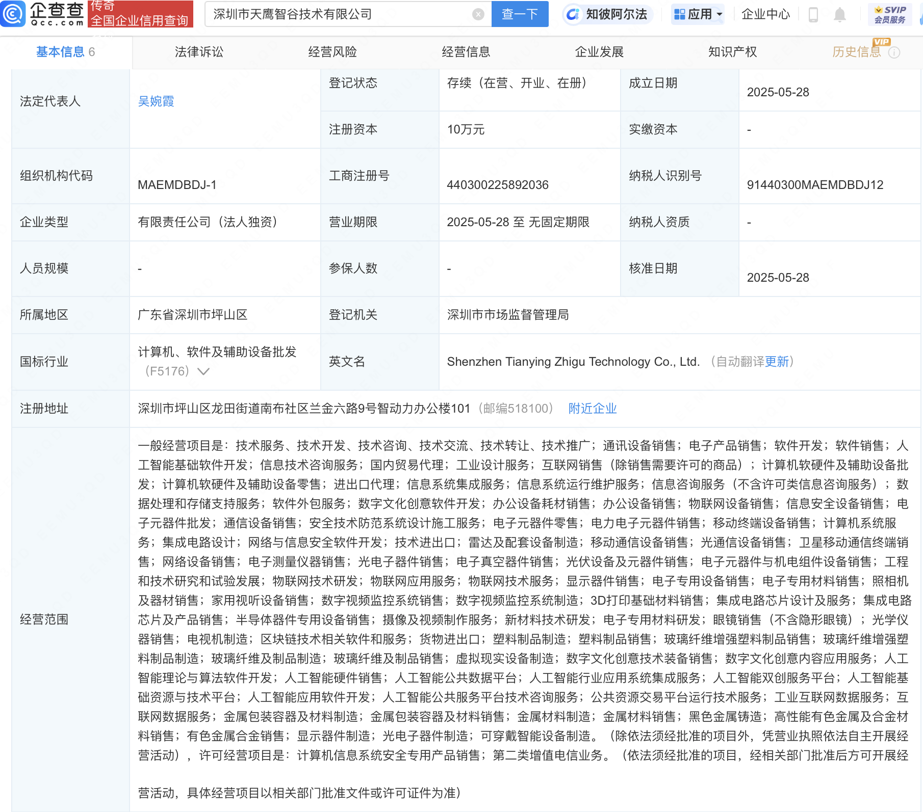企查查APP显示,近日,深圳市天鹰智谷技术有限公司成立,法定代表人为吴婉霞,经营范围包含:人工智能双创服务平台;人工智能基础资源与技术平台;人工智能应用软件开发;人工智能公共服务平台技术咨询服务等。企查查股权穿透显示,该公司由智动力(300686)全资持股。