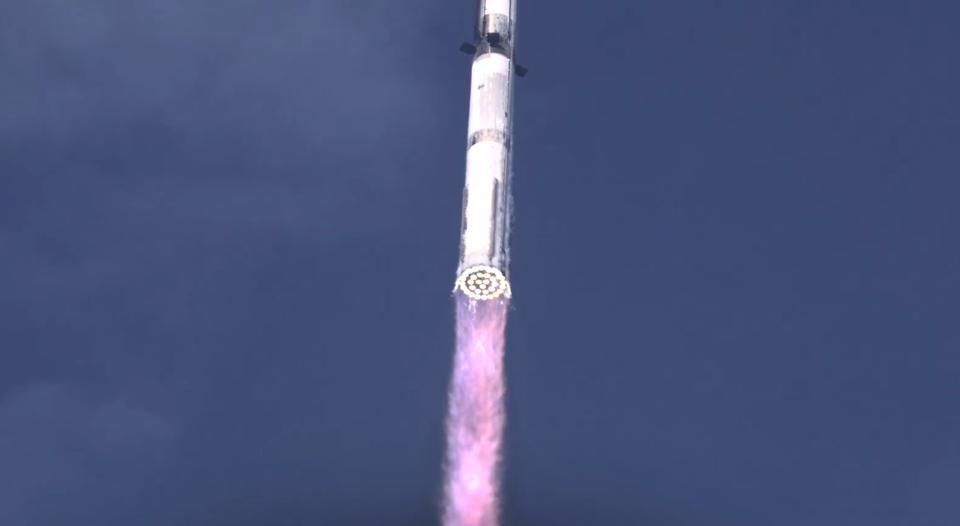 星舰“九飞”上升阶段画面,所有发动机工作正常