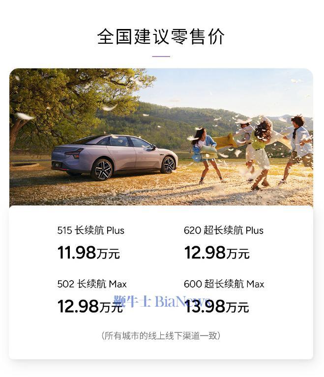 价格方面,新车有两个续航版本,其中续航502km的版本售价12.98万元,600km续航的版本售价13.98万元。