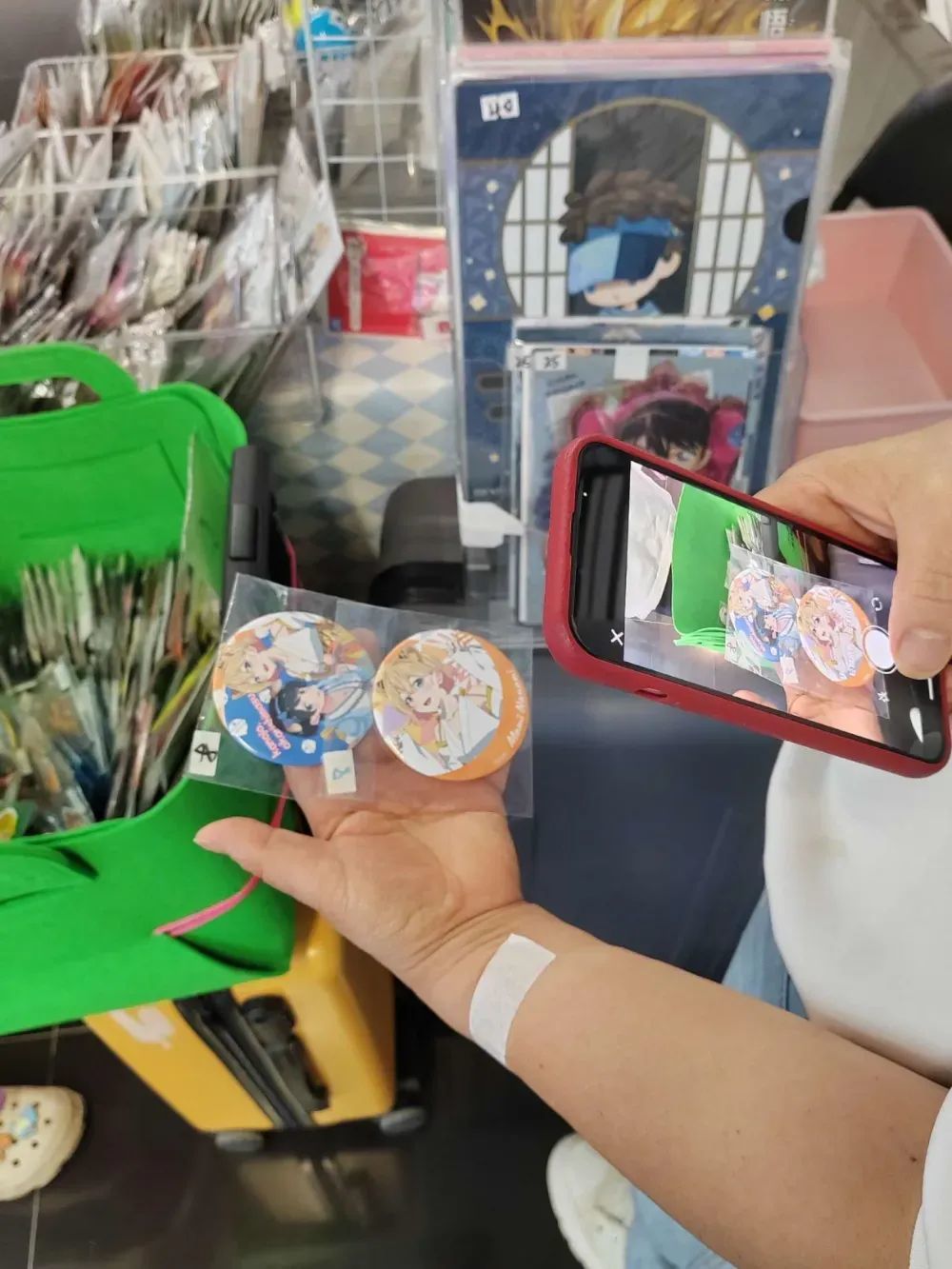 人们希望能在这个二次元中古市场里淘到低于市价或市面上少见的谷子。在其他商店里拍照识图对比价格会被店家侧目,但在这里则再正常不过。一只手拿着谷子,另一只手拿起手机对准拍照,搜寻全网价格进行比对,是独属于这里的顾客常态。