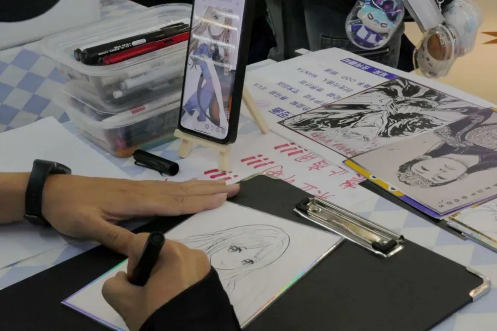画师库里在谷子集市里画了不少动漫角色的手绘。(图/张文曦)