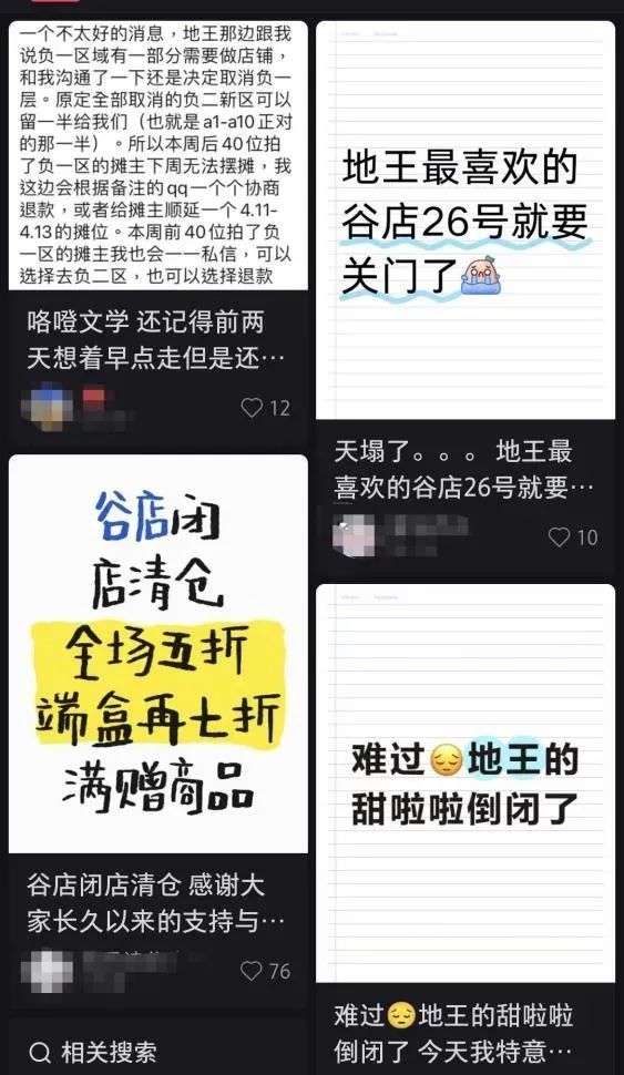 一些地王广场的谷子店陆续倒闭。(图/社交平台截图)