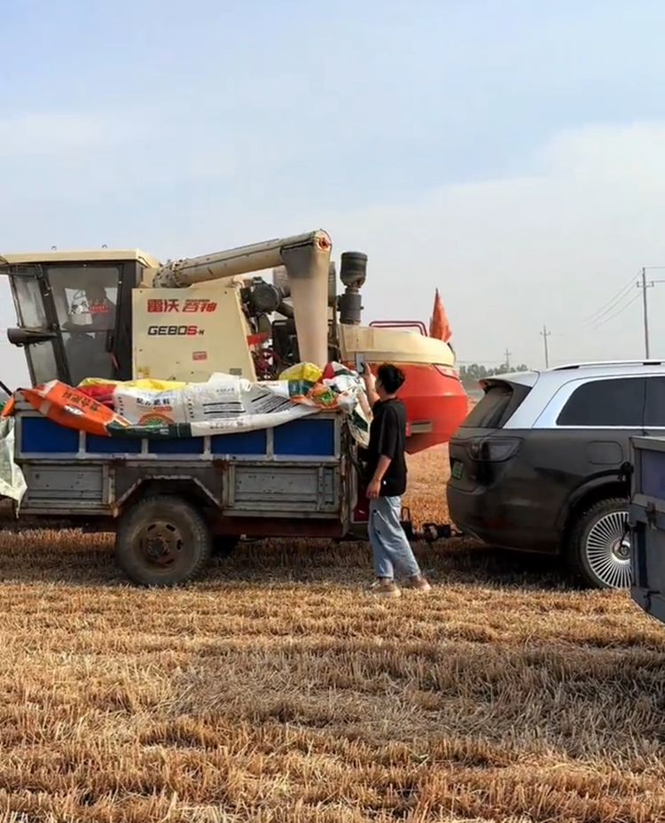 不过,显然这个视频是流量作祟,视频创作者希望通过这个方式博得更多的关注,结果也是达到了。50万高端豪华车与拖拉机收麦子这个反差的效果很是博人眼球,不过这种做法,在农村很容易获得“败家子”称号。