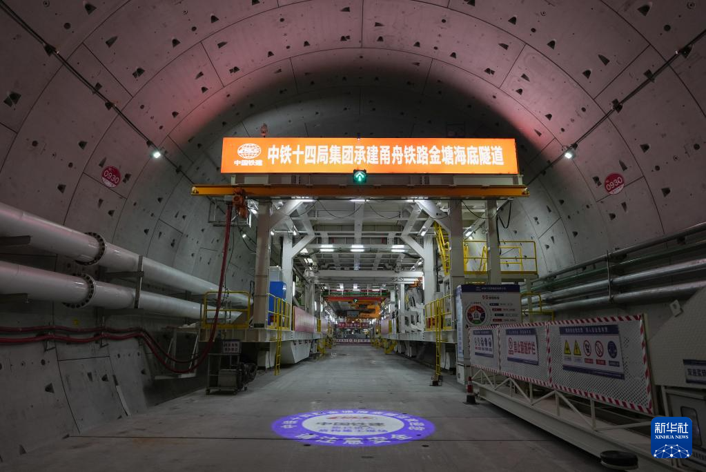 当日,在中铁十四局承建的甬舟铁路金塘海底隧道宁波侧地下64米深处,“甬舟号”盾构机成功穿越海堤,由陆域段进入海域段掘进施工,标志着隧道建设全面进入“穿海之旅”。