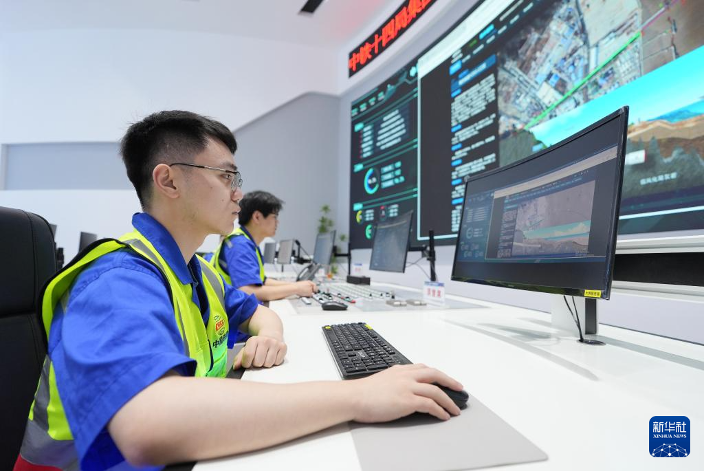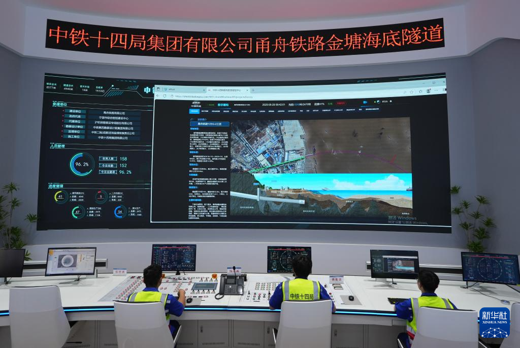 5月29日,中铁十四局技术人员通过甬舟铁路金塘海底隧道智慧工程监控管理平台进行远程施工管理。