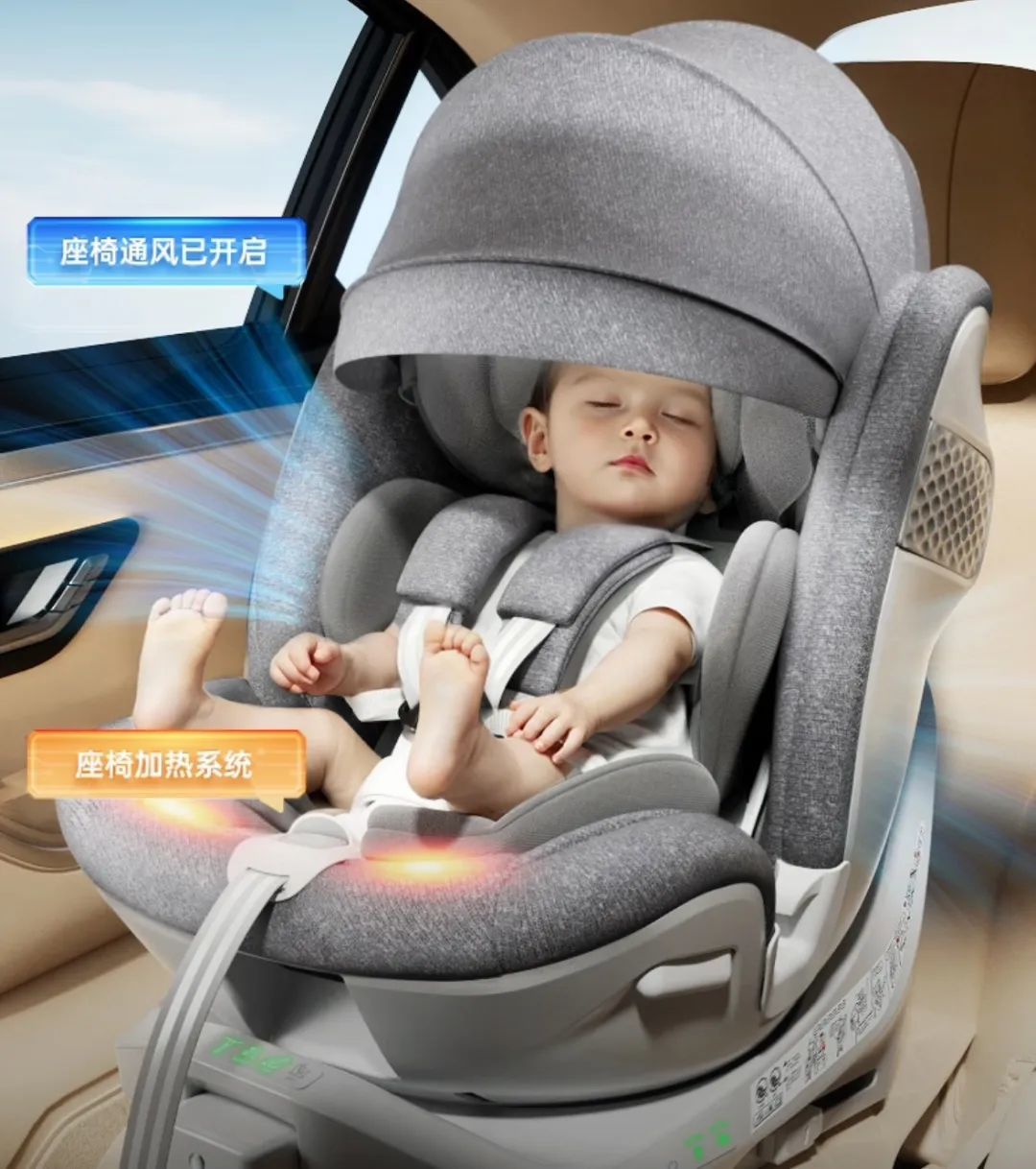 拥有座椅加热、通风功能,孩子的乘坐舒适性会大大提高。尤其对夏天容易出汗、怕热的宝宝来说,还是非常实用的。