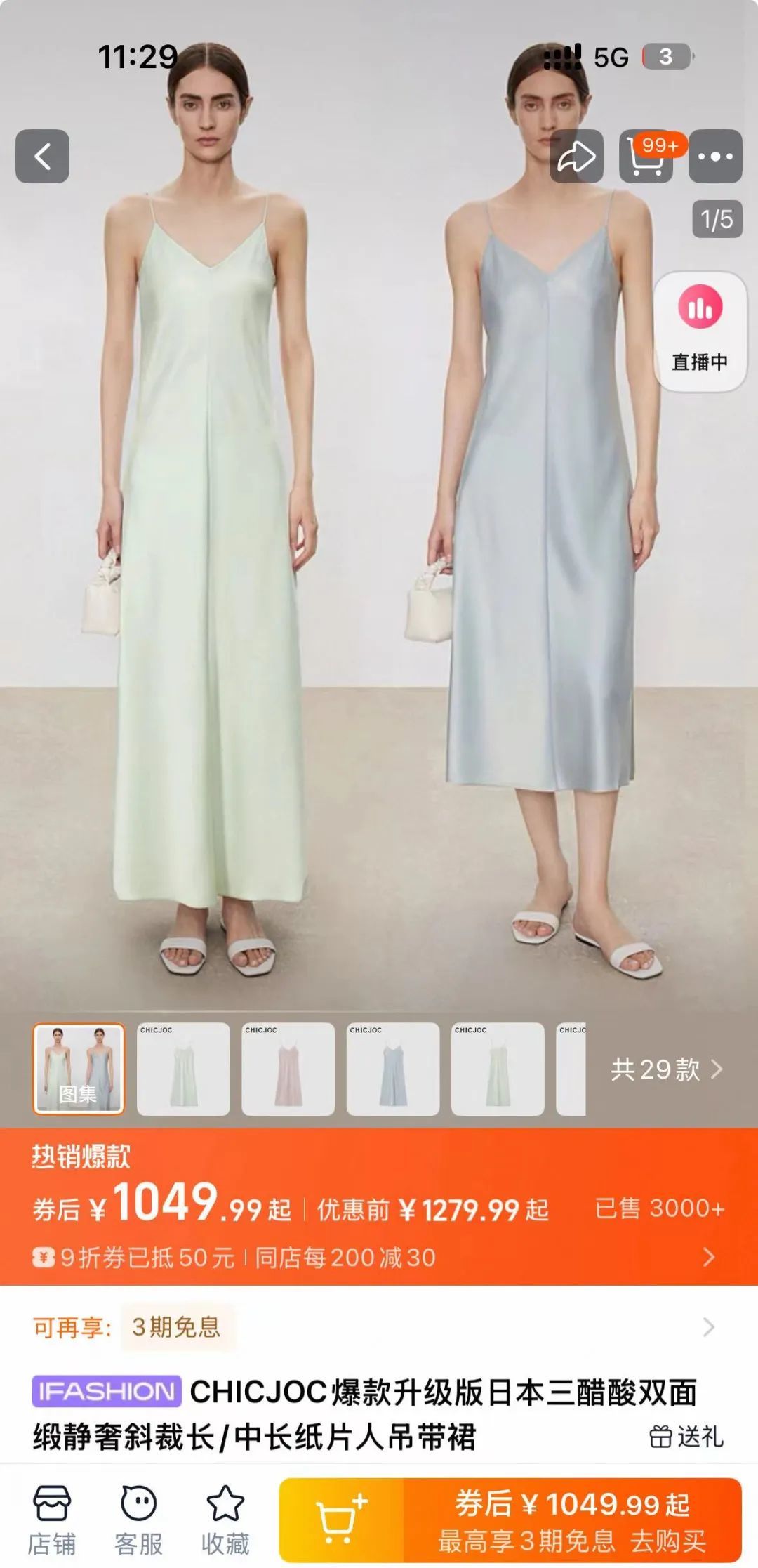 如果浏览「四大家族」天猫店会发现,除了商品详情页展示的进口面料报关单,进口面料+工艺几乎成了各家品名的标配。比如在CHICJOC ,一款1099元的爆款吊带裙,品名描述为日本三醋酸双面缎斜裁工艺。
