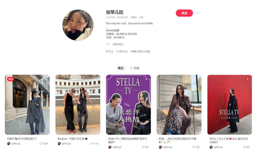 ▲UNICA品牌主理人Stella的社交平台主页