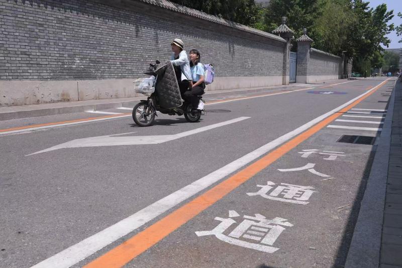 走进西城区博学胡同,只见胡同内地面清晰地施划着禁停区和人行道。机动车、非机动车和行人各行其道,通行秩序井然有序。因为长期存在的违法停车现象消失了,路变宽了,司机不用鸣笛,也不用像以往一样蜗牛般移动防止剐蹭到车辆行人,速度也提起来了。