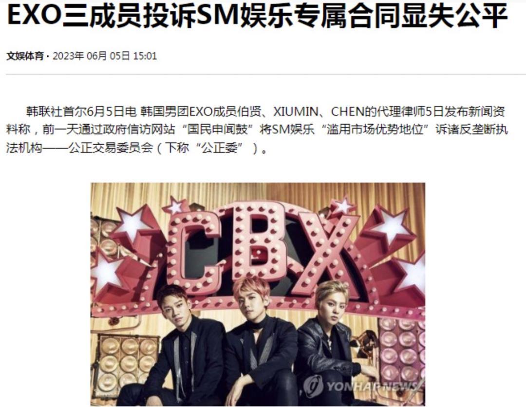 经营权虽然尘埃落定,但SM娱乐的内部问题非但没解决,还愈演愈烈。2023年6月,韩国男团EXO成员伯贤、XIUMIN、CHEN通过政府信访网站“国民申闻鼓”投诉SM娱乐“滥用市场优势地位”,公开了令人震惊的“霸王条款”细则。