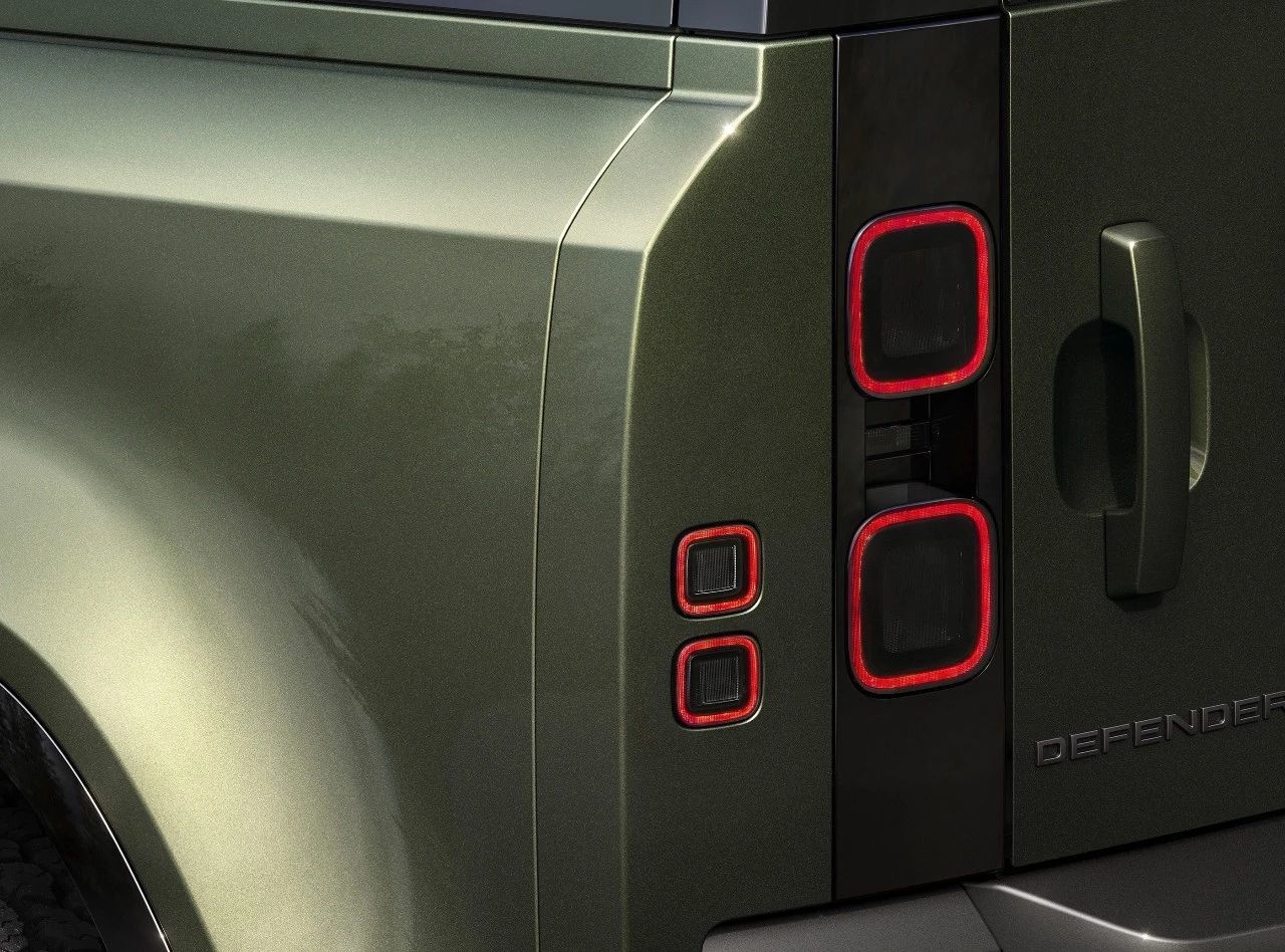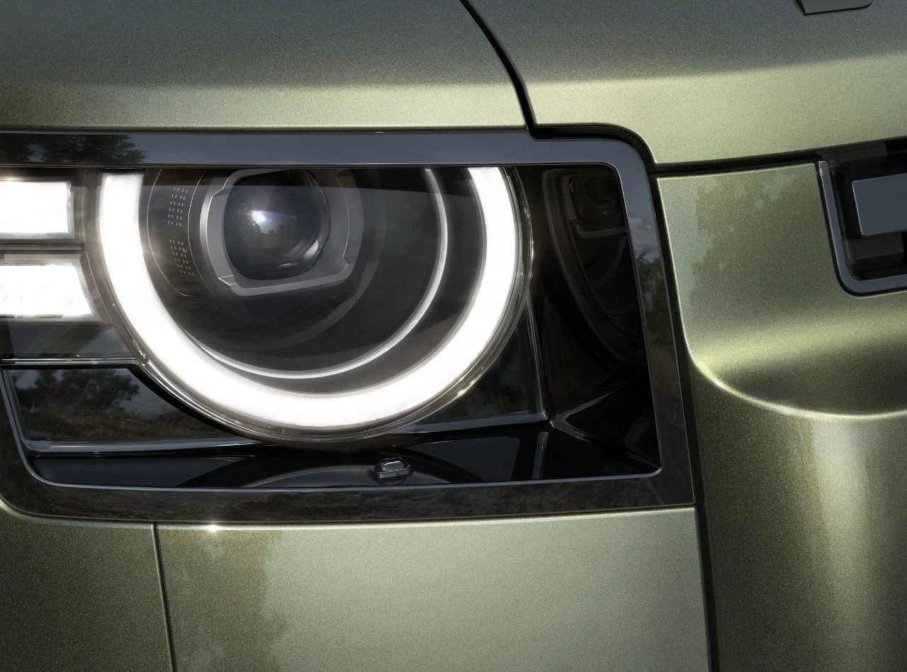 外观方面,新款路虎卫士依旧呈现出十分霸气、威武的视觉效果,前脸层次感、立体感丰富。新车两侧的矩形大灯组造型独特,内部采用半圆形LED日间行车灯组,辨识度非常高。此外,新车的大灯主体进行了微调,把灯体的尺寸缩小了,而且还可以实现在开启大灯时投射独特图形的功能。