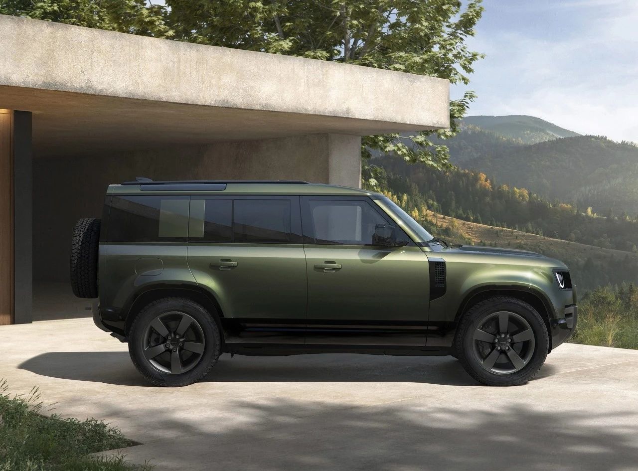 来到侧面,新款路虎卫士依旧是我们熟悉的方盒子设计,线条干净利落。同时,新车匹配了样式简洁的五辐式熏黑轮毂以及多活塞制动卡钳,与简洁的车身设计非常搭。车身尺寸方面,以110版本为例,长宽高都与此前版本保持一致,依旧为5018/2015/1967mm,轴距则为3022mm。