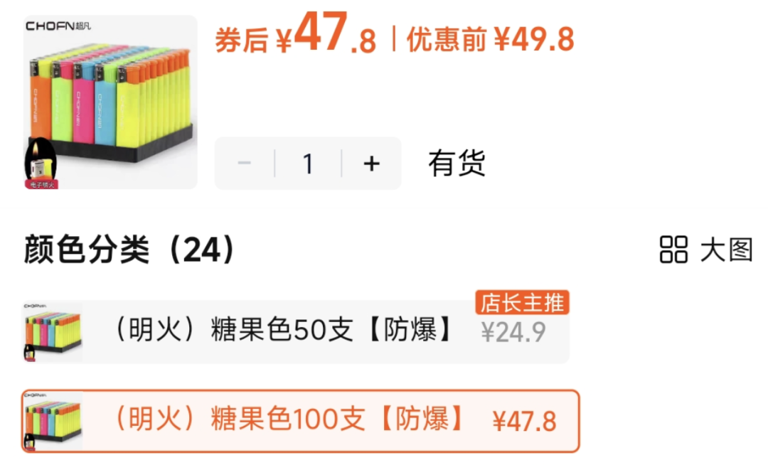 以平时见到的一次性塑料打火机来说,你在淘宝上买100支只要47元还包邮,折算下来不到5角钱一支,运气好遇到返现红包,你甚至还能从店家那边倒赚一笔。